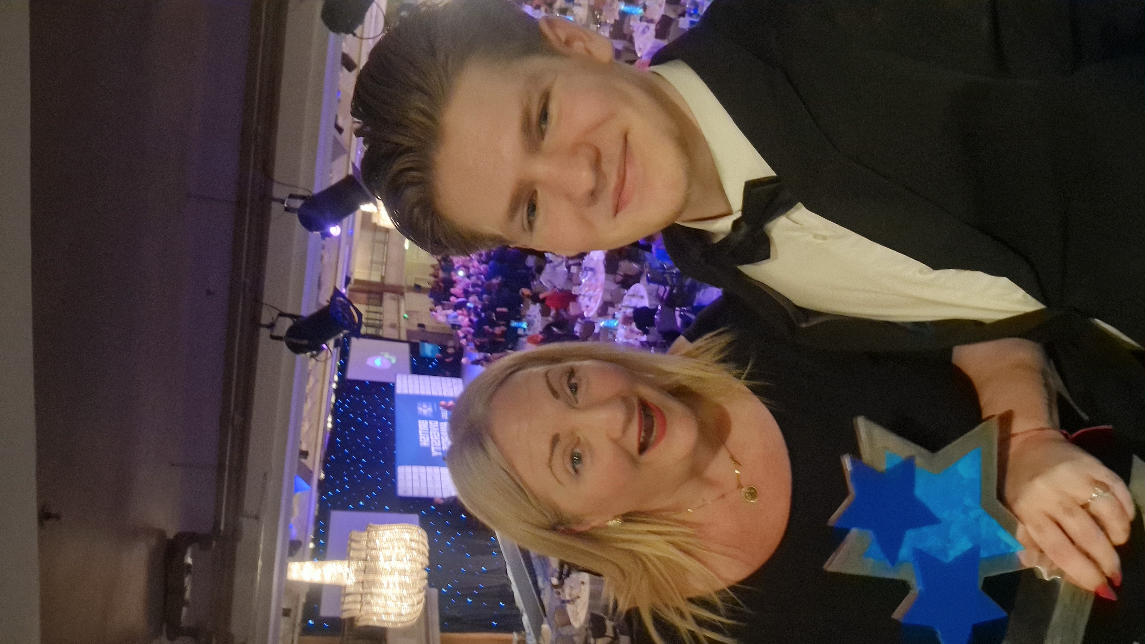 Image: Collage of photos from the awards night showing Phillipa and her son Charlie who supports in the facilitation of the workshops